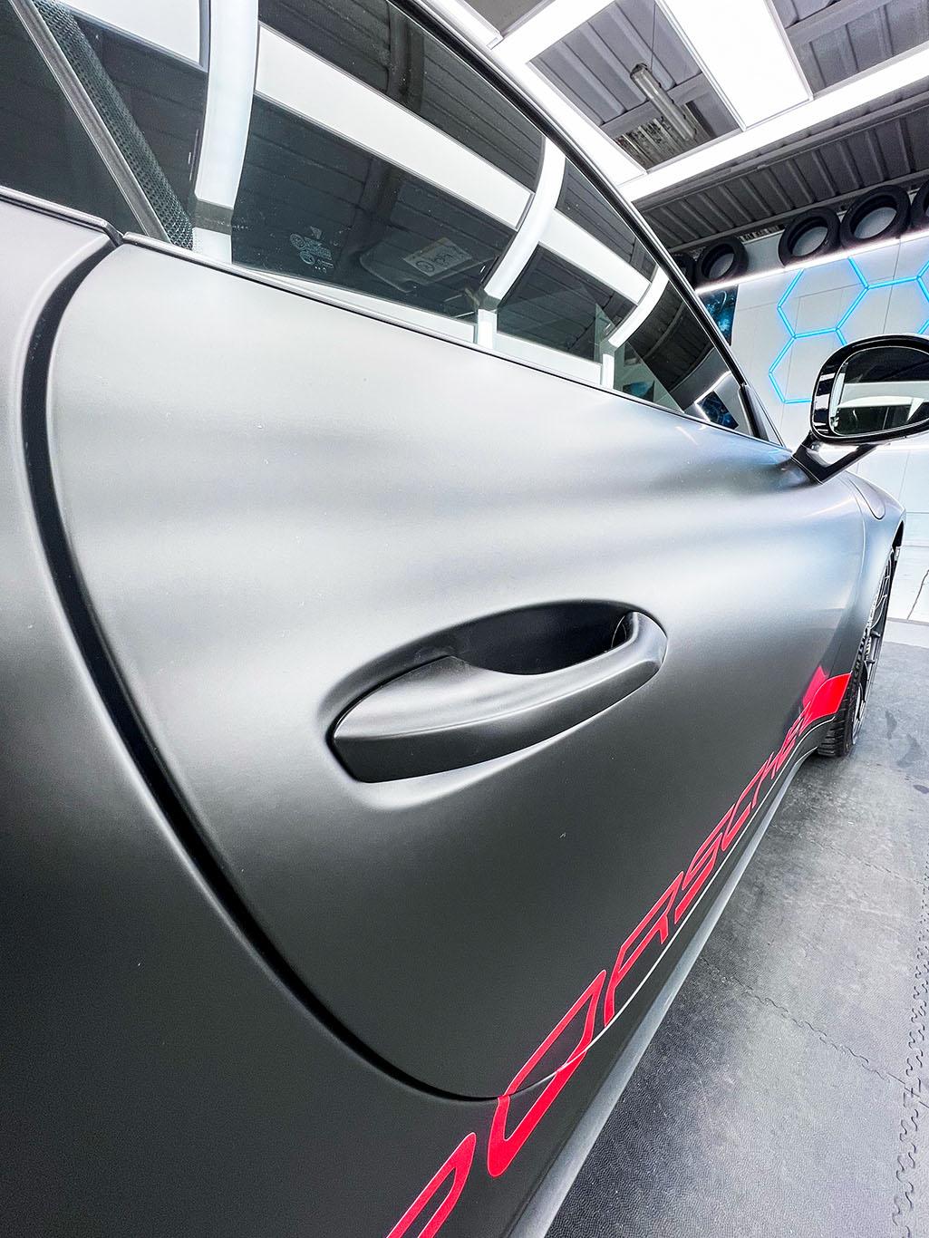 Wrapping completo in nero satinato con grafiche e dettagli in colorazione rosso lucido supergloss! Pellicola 3M a lunga durata.